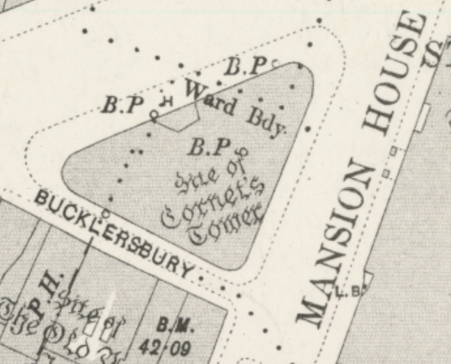 During one of my usual perusals I was focussing around the area of Cornhill in the heart of the City when I came across an annotation which read “Site of Cornet’s Tower“.