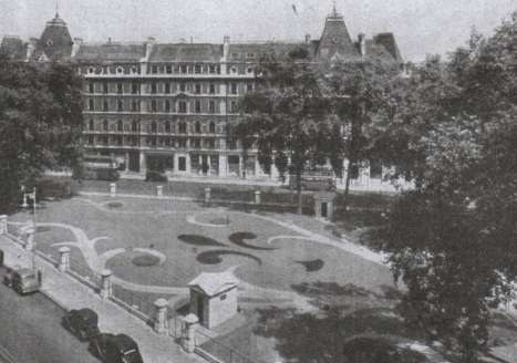 Following the war the shelters were removed and the park was destined for a makeover. It would appear that someone in some department somewhere decided that they should go the extra mile and commissioned the then architect-in-chief of the National Monuments and Palaces of France Jean-Charles Moreux, to re-design the gardens and two small buildings to sit on each side. The gardens were to be unofficially known as “London’s French Gardens” and opened in 1952. As part of the new French look, a number of the existing large trees were removed, a large arabesque pathway formed with gravel, and a fleur-de-lis centerpiece composed with flowering plants. This design did not sit well with many of the gardens more traditional visitors and there were numerous letters to the papers from people who preferred the “British Style” against the more ostentatious “Foreign” design. “Like wallpaper patterns turned into paths” harrumphed one upset Londoner, while others found the design “inexplicable’”, and “completely useless“.
