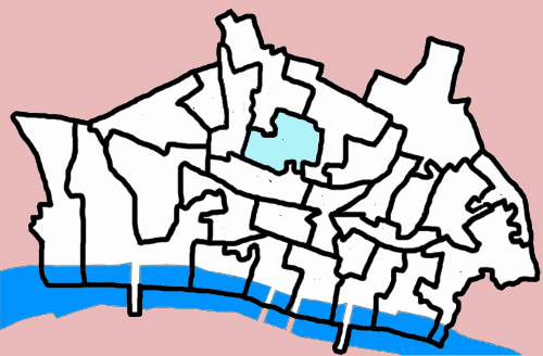 This was once a very small ward bounded on the east and south, by Coleman street ward on the north by Cripplegate ward and on the west by Cripplegate and Cheap wards, however due to boundary changes over the centuries and more recently in 2003 it is now much larger and for the purpose of this post, I’m going to focus on the earlier smaller ward. It has one main street today known as Basinghall Street, which back in medieval times was called Basinghawe.