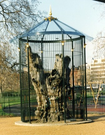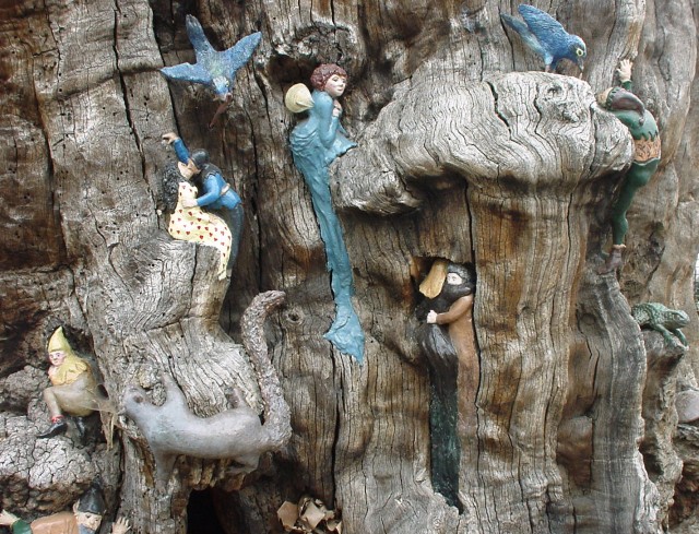 The elements and neglect saw the oak in a very sorry state by the 1960s. One man who who took up the cause for it’s preservation was comedian Spike Milligan, who began to document the tree and catalogue the various creatures. He lived and worked from a building directly opposite the park and used to visit the oak on a regular basis. During the late 1960s and early 70s he undertook his own conservation work, but it became clear he was fighting a losing battle and the tree began to deteriorate. It wasn’t until 1996 that Spike led a successful campaign to have it restored. Milligan’s contribution as advisor and his photographic records of his own restoration in the 1960s proved to be of great value to students from Byam Shaw School of Art, who restored the tree in 1996. They were led by the artist and conservator Marcus Richards. Richards has continued to be responsible for restoration and maintaining the Elfin Oak to the present day. A year after its restoration was finished the Governments Heritage department declared it a Grade II listed structure.