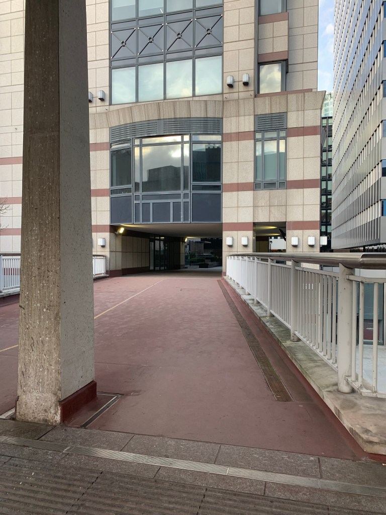 The walkways in this area are open on one side to allow light to flood in and to give great view over the complex. As you exit the area known as the Postern you used to only have the option of following the pedway until you reached London Wall, turning right and heading back towards the Museum of London. It is here that since 2017 there has been a new addition to the pedway scheme and the designers have made it stand out by not following the strict linear contours of the existing system.
