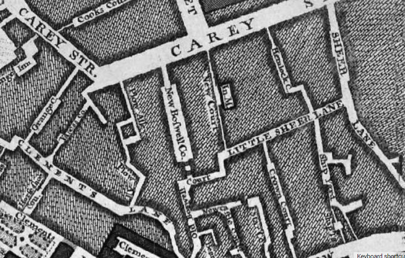 There were many of these dotted around London, one of them was located at 23 New Boswell Court within the Clare Market rookery or slum, which is now buried under the Royal Courts of Justice on the Strand. Clare Market was a warren of dark dingy alleys and courts full to bursting with people living in or close to poverty. The alleyways were lined with ramshackle building some as tall as five stories high and mixed with these were shops and many taverns.
