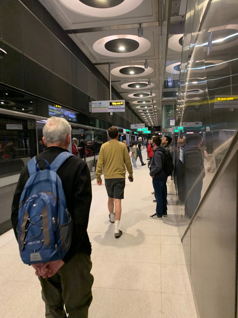 The train arrived and we all got on and it felt like the plastic coverings had just been taken off the seats. I’m not sure if it was me but I thought I detected a slight fragrance being blown through the air ducts. The trains are all at platform level so there’s no “Mind the Gap” announcement, this must make things much easier for anyone in a wheelchair or mobility scooter like the lady who got on. A fellow passenger said to her “You must be pleased now it’s level access?” To which the lady in a strong east London accent replied, “I’d be a F****n sight happier if they were all like this“.