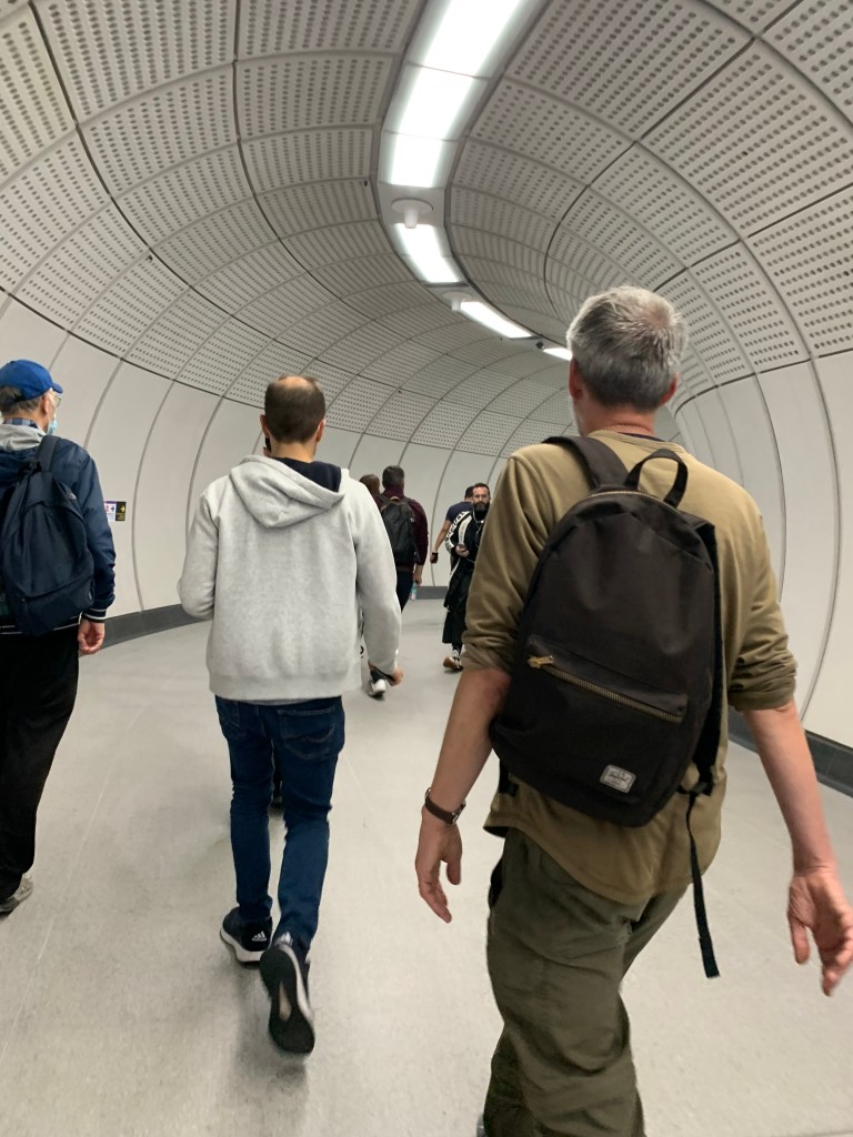 The first thing that struck me was how steep the escalators are as I descended into the cavernous station concourse below. The gaggle of people in hi vis vests at the bottom of the up escalator was because a lady had got her long skirt trapped in the mechanism.
