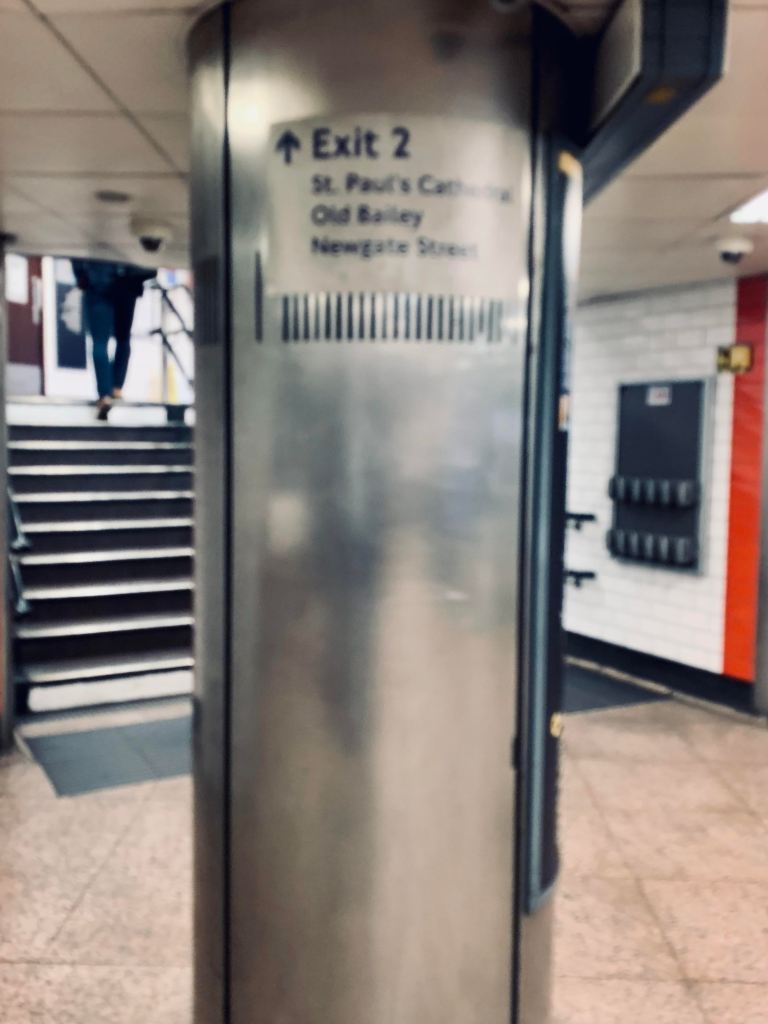 My train arrived and began the tortuous noisy journey, rocking and rolling in a rather stuffy carriage to my destination at St Paul’s where I walked up to street level through a very tired looking ticket hall blinking into daylight once more.