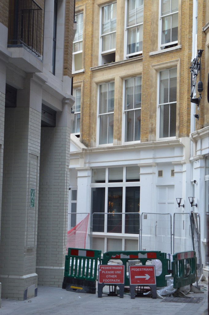 The older buildings look 19th century and subsequent research shows that Ludgate Square gets it first mention in Ordinance Survey maps of 1894. However, the line of the street has an older history. It’s earliest mention is by John Strype in 1720 when it was known as Holiday Court. In his opinion it, ” is a pretty large Place, but of no great Account: And here are two Courts into it, and both bearing the same name.” John Roque’s map of 1746 shows it as Holyday Yard