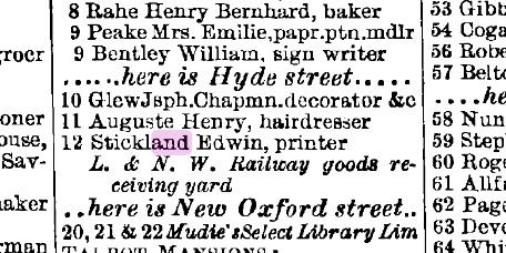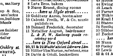 Forty years later and possibly with the buildings seen today there is a change in the block. The advent of the L&NW Railway in 1846 may have seen a change in the set up of the block, possibly only a number of years after the first directory (possibly musical tubes weren’t all that popular). There’s also a change at number 11, boots are out, books are in.