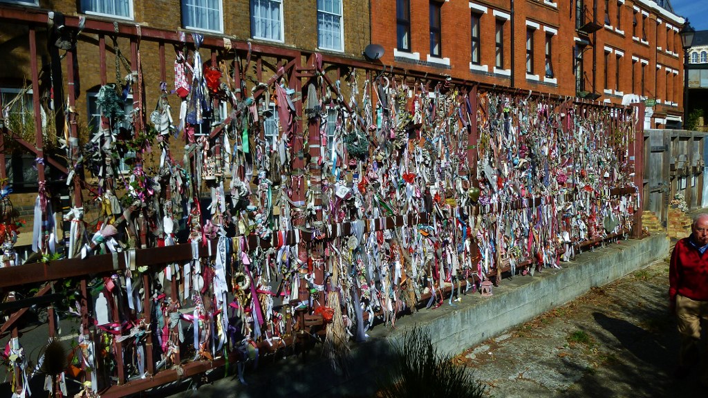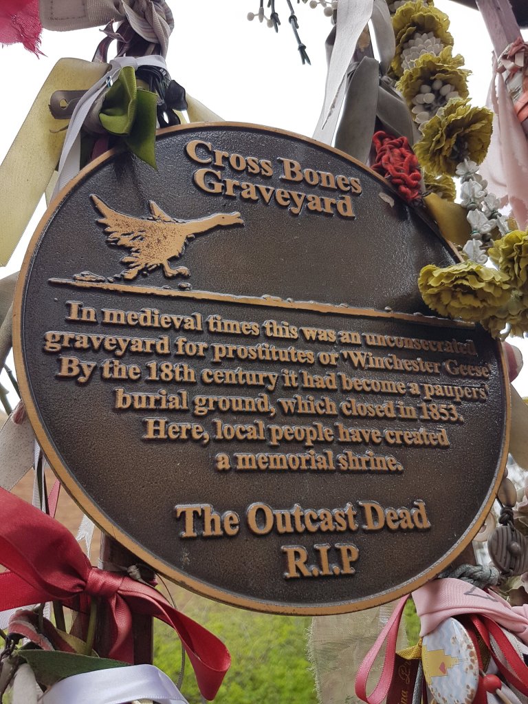 Surprisingly, given the time that has passed and the evolution of the southern bank of the Thames, it is still possible to visit one of these unconsecrated areas today. Cross Bones in the shadow of the Shard is a disused medieval burial ground on Redcross Way in Southwark about five minutes walk from Borough underground station. It is thought to have been established originally as an unconsecrated graveyard for “Winchester Geese” and was used latterly as a Paupers burial site.