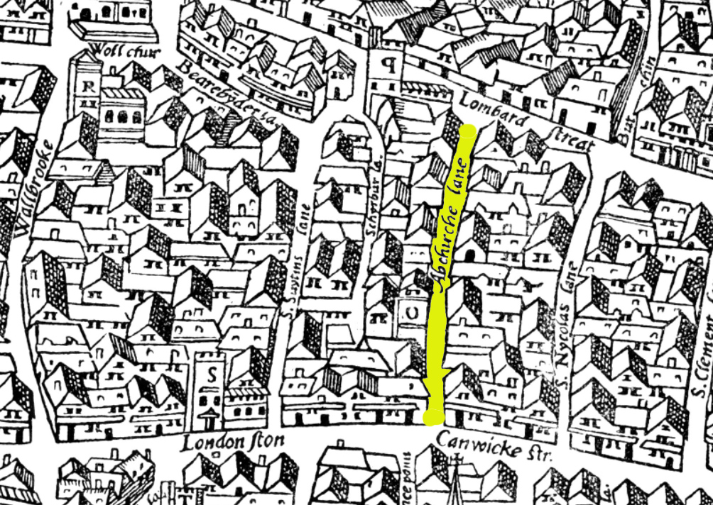 So we’ve established your bona fides, your a twenty year old called Emerson Dickmane and your father, Emery is a wealthy merchant and member of the Worshipful Company of Pinners. You have lodgings in Abchurche Lane between Lombard Street and Canwicke Street (today Cannon Street) within the walls of the City of London.