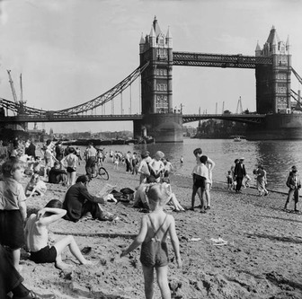 First, and to most people, most interesting, is the new “lido” on the Thames by Tower Hill. The strip of foreshore, which is uncovered to some width at low tide, has had its shingly surface improved by the addition of sand. A boatman is posted on duty to see that venturesome children do not get themselves into danger, and thousands of boys and girls whose homes are in drab grey buildings clustered at the south of Tower Bridge and London Bridge, are spending happy holiday hours at play there. Even the authorities have been taken by surprise at the new Lido’s popularity. When it was opened a few weeks ago they expected that 500 children a day would visit it. But there were 5,000 a day from the beginning, and considerably more since the summer holidays started.