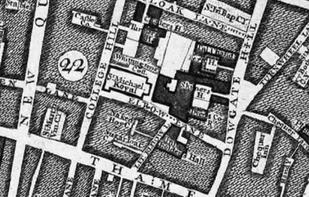 The street that this story happened in is today known as College Street, formerly called Paternoster Lane after the church that once stood in it.