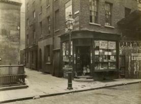 Charles Booth recorded the area on his poverty map shortly before the area was swept away. For the most part it shows that the majority were what he described as “Poor, subsisting on between 18-21 shillings per week” and ” Very poor, in chronic want”. The solid black lines denote”Lowest Class, viscous, semi-criminal”.
