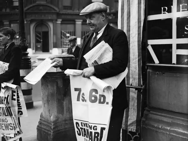I’d already been given the inside track by the soon to be previous incumbent, “Fred/ ‘arry /Bill “, for these were the names of all gangmasters in the newspaper retail game, “likes to hear a good shout from ‘is boys”, so for several weeks I did the rounds of sellers outside the local stations to try and get a handle on the salutation. They were many and varied and not all shouted by mere youths such as I. Some were shouted by seasoned pro’s, usually short little men in overcoats and flat caps and the obligatory fag, who to my mind looked ancient. I favoured the short abrupt “Stanart” or sometimes “Stanard” by the more eloquent seller, but there was also the lilting “Staaaaaandard” with the inflection in the drawn out middle. You could always tell the old timers, as they would add “Fyanal” to the end of their call. At first I heard it as “Lionel” and wondered if they were shouting out to a mate, but as they did this at every call I reasoned that the chances of all the punters being call Lionel, even the women, were a bit slim. Then it dawned that the word was “Final”, denoting the last and most up to date issue of the paper.