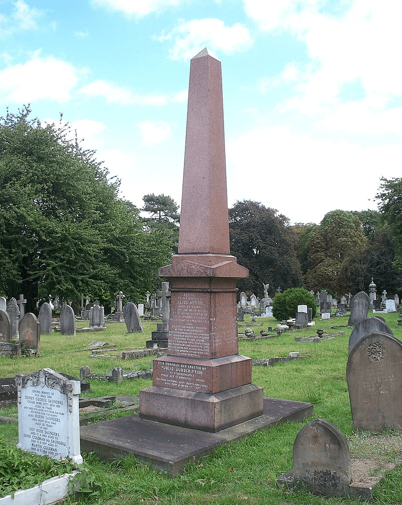 A memorial service for Ayres at St Saviour’s Church, now Southwark Cathedral attracted such a large crowd that mourners were turned away due to lack of standing room.