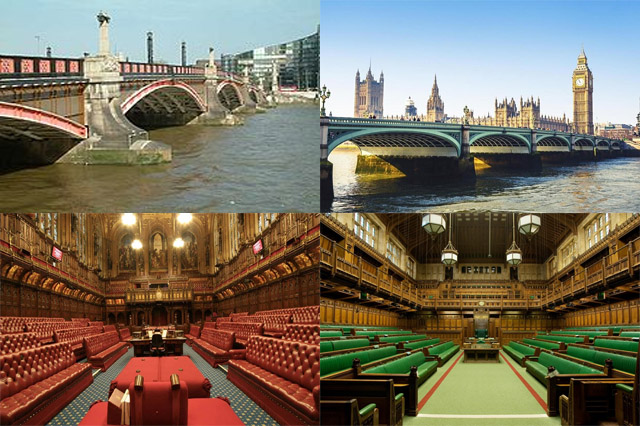 Lambeth Bridge is painted red to match the seating in the House of Lords, while Westminster Bridge is green to match the ones in the House of Commons.