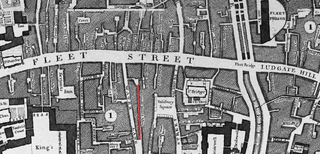 Back in the 1600s, the alley had many entrances and exits from Fleet Street, Whitefriars Street and the area directly behind Bridewell Prison. The alley took its name from a signboard with a sword attached to it to denote the premises of a Fencing School which once hung within the alley. It was the place of business in the early 1600s of John Turner the greatest exponent of the art of fencing in England. It’s also the site of his brutal murder by two armed assailants.