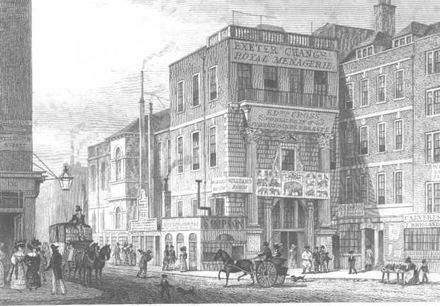 Burley Street (now Burliegh Street still exists today). The house, later known as Exeter Exchange was demolished in 1827.